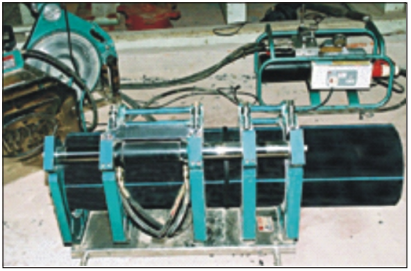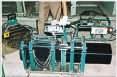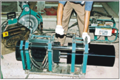 Bước 3: Đặt đĩa gia nhiệt vào giữa hai đầu ống và điều khiển lực đẩy các đầu ống nhựa HDPE tiếp xúc với đĩa nhiệt đến độ đạt được mức nóng chảy cần thiết theo quy định. Khi đó, tách hai đầu ống và tháo đĩa nhiệt ra khỏi máy.