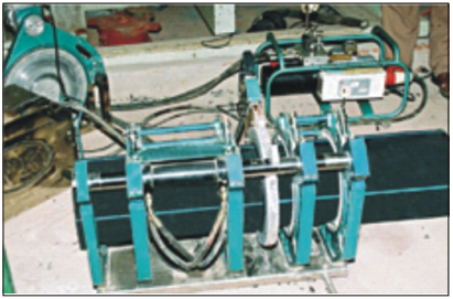 Bước 1: Kẹp ống nhựa vào máy hàn, làm sạch và xem lại độ thẳng tâm của hai đầu ống cần hàn. Đồng thời, chú ý vệ sinh và kiểm tra nhiệt độ của đĩa gia nhiệt.