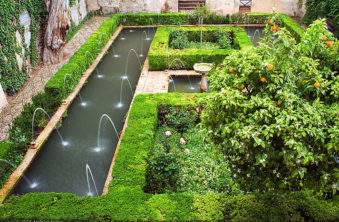 Kiến trúc ngày nay muốn bù đắp sự thiếu hụt nước tự nhiên do thiên nhiên ban tặng nên đã dùng phương pháp thủ công đào ao hay suối phun nước. Những tia nước vút lên ngụ ý mong muốn cho của cải đến nhiều.